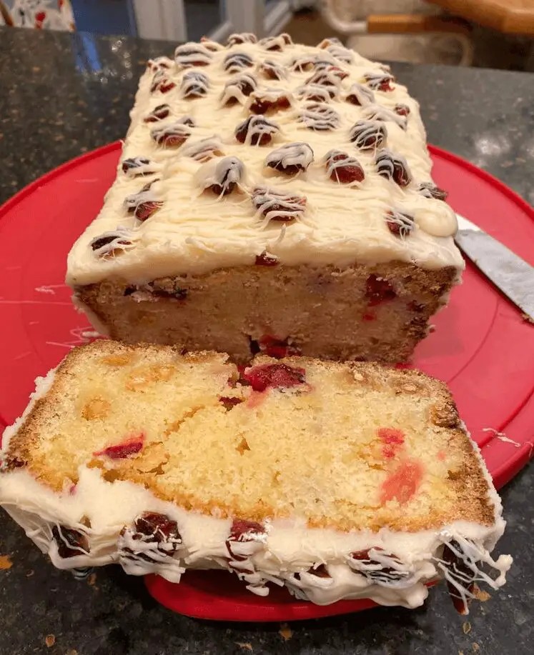 Looking for an easy, perfect Christmas Cranberry Pound dessert recipe? Then you should try this rich pound cake with white chocolate, cranberries, and cream cheese frosting. This cake would be a great Christmas gift for your family.